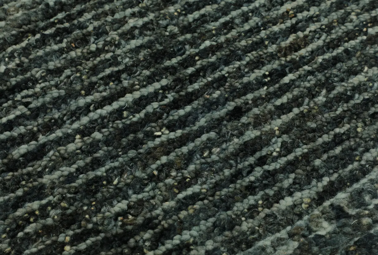 Collection Bio: Rooted in the warmth of natural materials, our Nomad collection celebrates hand‑crafted texture and tonal depth. Each rug is hand knotted in a generous, tweedy boucle using 100% Wool on a cotton warp—hand‑spun, hand‑carded, and finished in a worsted character—creating a grounded, tactile surface with subtle striping and heathered color.