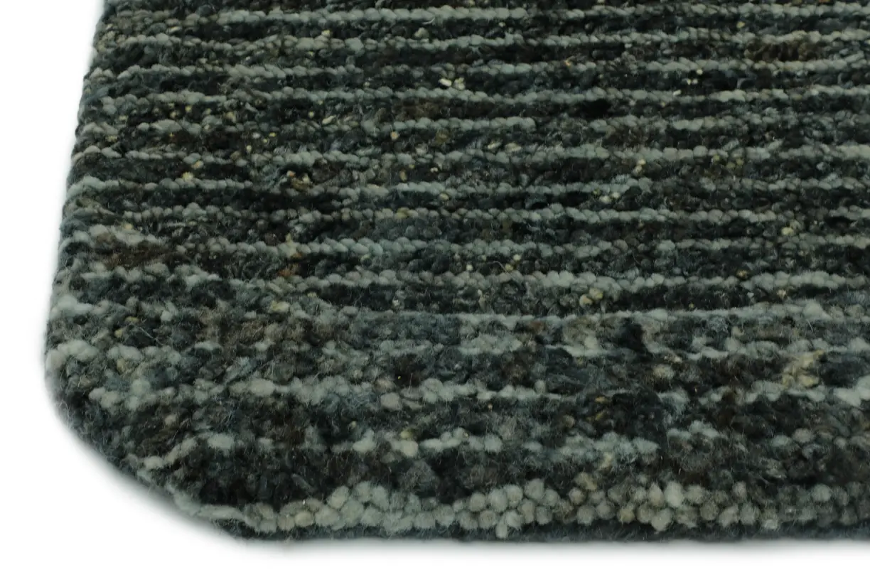 Khaddar Caviar Rug: Inky charcoal to graphite bands lend Caviar a tailored, modern edge. The dense, hand‑knotted pile delivers luxe depth with quiet sheen.