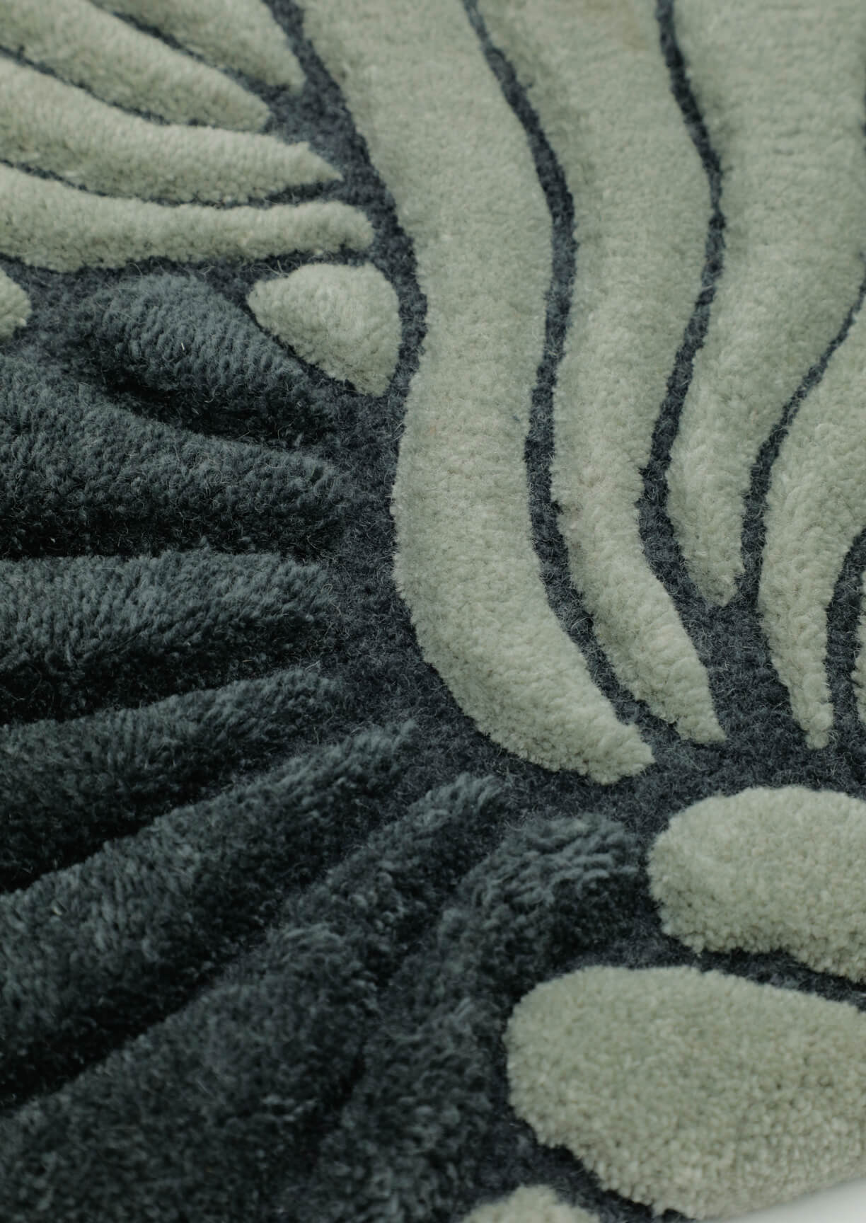 Shell Carbon Rug : Sage brings a gentle, organic green that inspires calm and a sense of stability. This hand-tufted wool rug delivers tactile beauty and visual rhythm, which are enhanced by the dimensional pile of the Shell design. It’s a serene yet elegant option that gives opulent environments harmony.