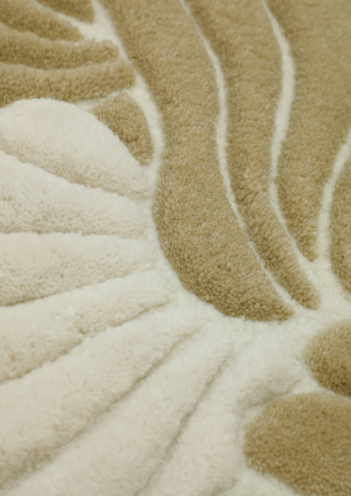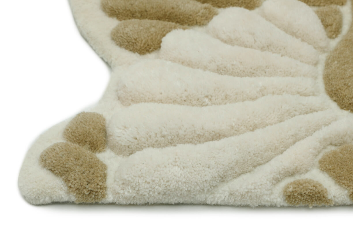 Shell Snow Rug : Snow is unquestionably stylish, clean, and sharp. The sculptural contours of the Shell design highlight its bright ivory tone, creating gentle shadows that give depth without disturbing the tranquility. This hand-tufted rug made of pure wool provides a contemporary canvas for opulent spaces looking for understated elegance.