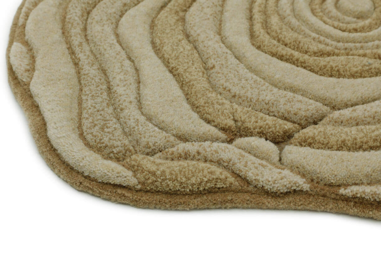 The Carve Collection turns the essence of the outdoors into tactile craftsmanship, drawing inspiration from the inherent beauty of tree rings and natural wood textures. With a sculptural high-low cut pile that mimics the depth and rhythm of hand-carved wood grain, each rug in this collection has the unique Stump Design, which is painstakingly hand-tufted in 100% natural wool.