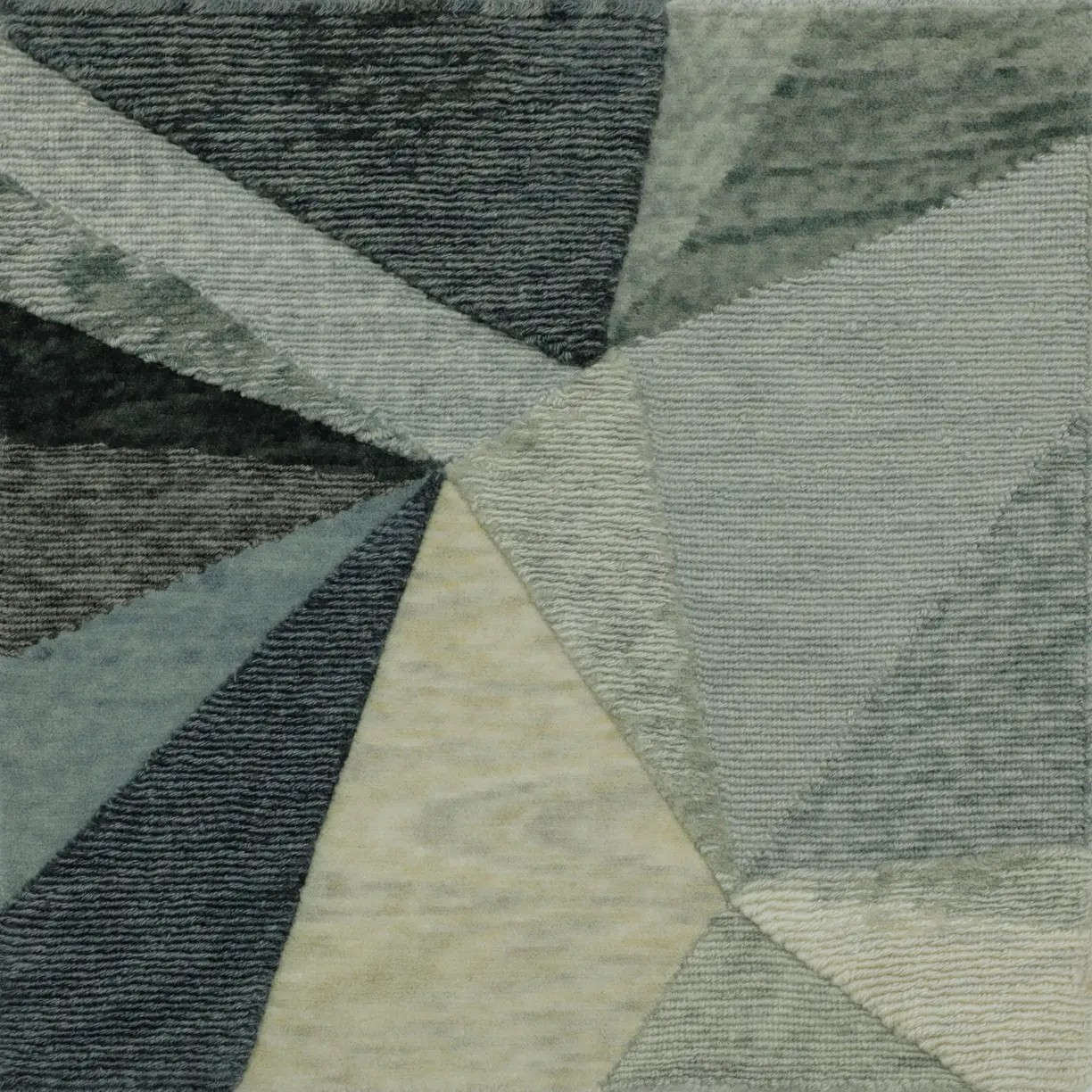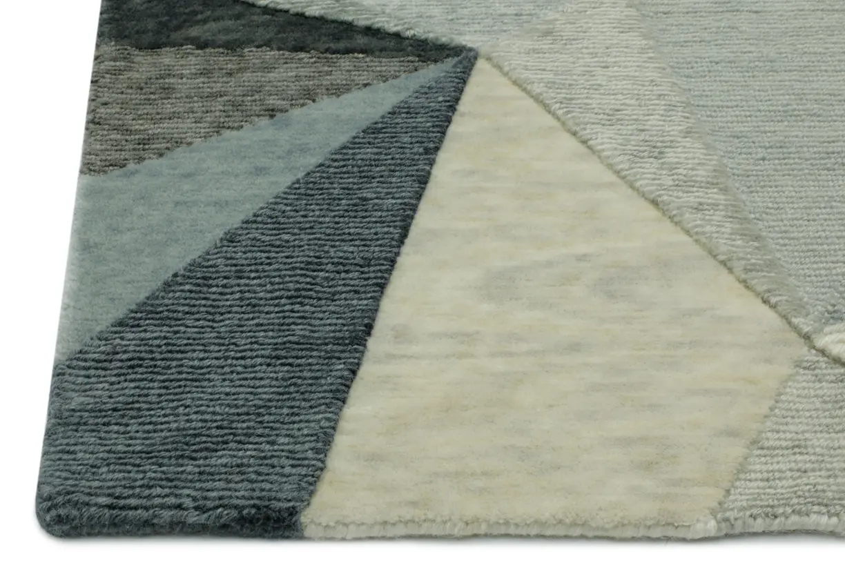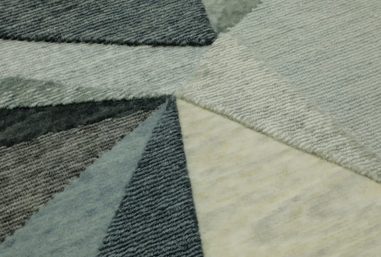 Triangulation Rockport/Gunmetal Rug : Steel‑blue Rockport with gunmetal accents offers cool, industrial sophistication in a dense hand‑knotted build.