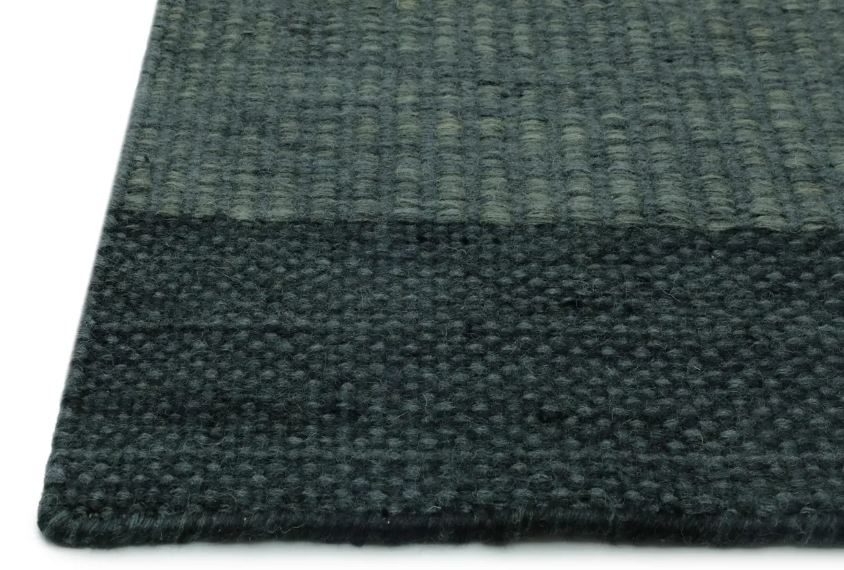 Uppsala Caviar Rug : Bold charcoal striping with soft heathering. Minimalist, resilient, and easy to style from modern to rustic settings.